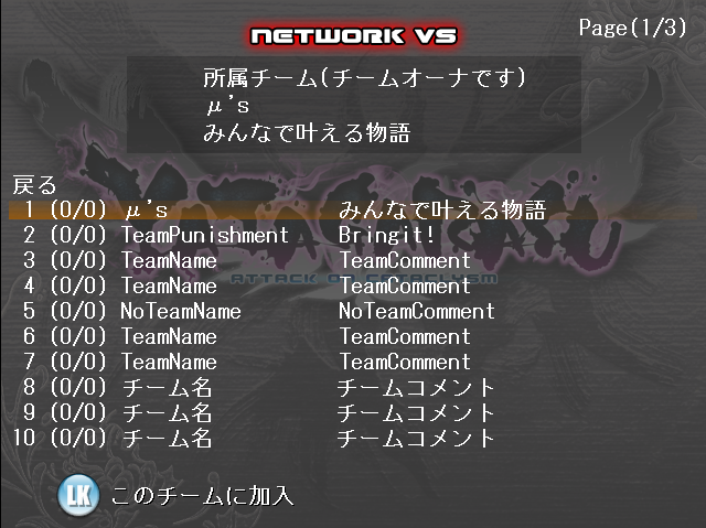 ゲーム内で、プレイヤー同士で「チーム」を作成することができ、月の勝利数や獲得ポイントなどを競うことが可能です。