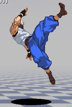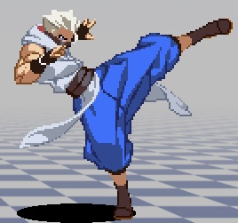 自分の頭くらいの高さを蹴るハイキック。対空や飛び防止に。