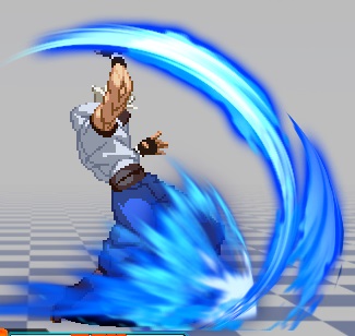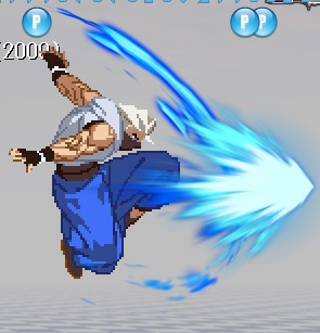 発生時に拳を振り上げるモーションで一度攻撃判定が出た後、地面を這う飛び道具が出てさらにもう1ヒット。近距離で当てても連続ヒットはしない。