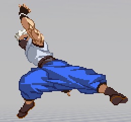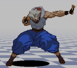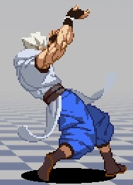 斜めへの掌底。ほぼ真上にしか攻撃判定がなく、地上の相手には当たらない。