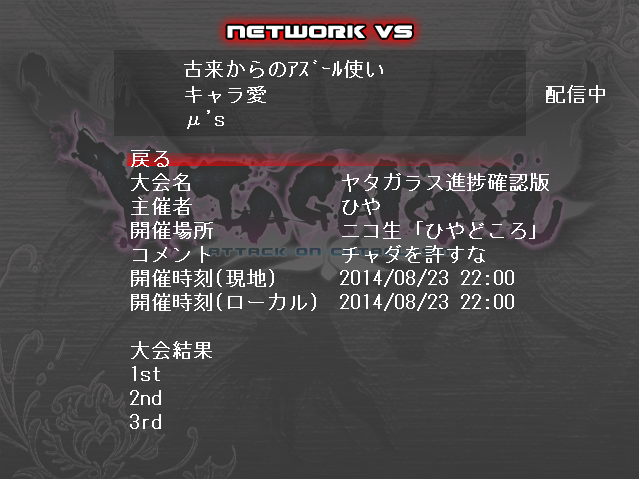 また、過去の大会結果もゲーム中で確認することができるうえ、大会予定がある場合はタイトル画面で告知が行われます。